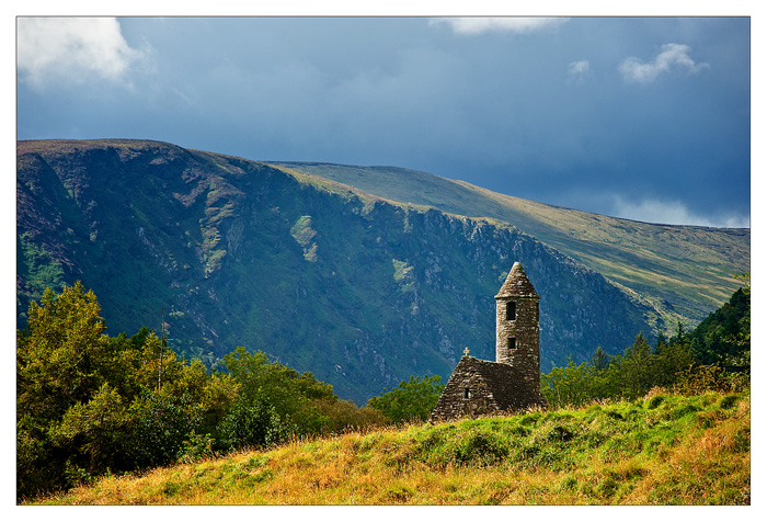 Wicklow is on the opposite side of Ireland to mayo and of course I brought the camera. We stopped for a few minutes at Glendalough probably Irelands most famous monastic site, the place was full of people and it rained, so I resolved to go back in the winter time,when it will be quieter . I did get this picture of the small chapel that I liked.