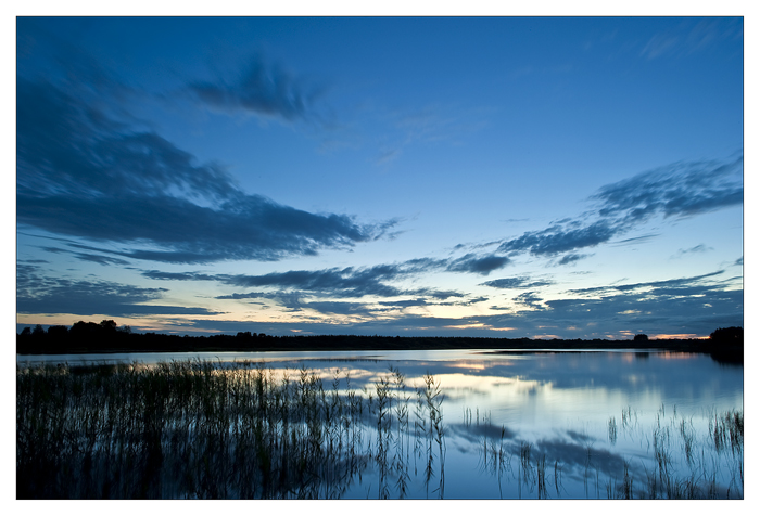 Yesterday it looked like we might get a good sunset so I dashed out to a local lough, Lough Na Annagh to capture it, low cloud meant the sunset was unimpressive and the breeze on the Lough meant there were no reflections either. So I just waited to see what might develop, and as I expected the drop in temperature meant the breeze dropped, and as the clouds moved across the sky I got this picture about fifty minutes after the sunset, the exposure was 15 seconds.