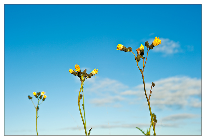 I took this picture a few days ago at the side of the road, I think the flower is called sow thistle but I could be corrected. What attracted me to take the picture was the height of the flowers and the fact there were three. Three is always a good number for composition.