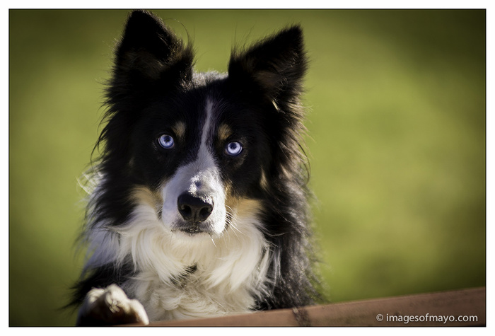 Yesterday afternoon I stopped on the coast road between Mulranny and Achill to photograph some sheep.I was a little concerned when the sheep dog who was in the garden opposite came pounding down to see what I was at. But I need not have been concerned, he was the friendliest, and what amazing blue eyes!!!