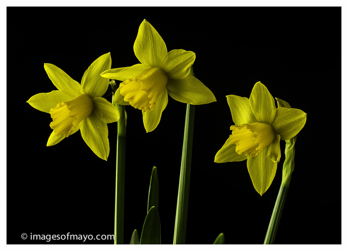 Well its officially the first day of spring according to the Irish Meteorological Service. It rained very heavily this morning, so I did not get out in the morning, then in the afternoon I had a date with the television to watch Ireland beat England in the rugby, so I planned a sunset, but the weather this evening was just like the morning so I decided to photograph these small daffodils that were blooming in the garden. So I dug them up , put them in a pot and photographed them in the kitchen.