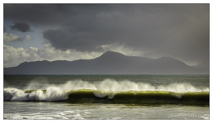 Another lovely spring day in Mayo, mind you the winter is doing its best to hang on, between long spells of sunshine there were sudden heavy showers of hail and sleet . It was also windy which helped to lift the tops off these waves on Mulranny strand this afternoon.