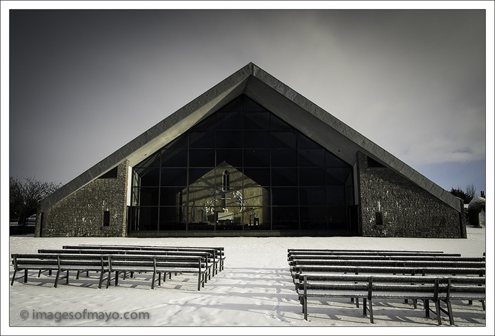 Yesterday's snow quickly turned to slush and melted away but we had more during the night. I was in Knock this morning early , I thought the light on the Apparition Chapel was lovely and the snow made it a little different to usual. As you can see there was more snow approaching, but I don't think it will stay around past tomorrow.