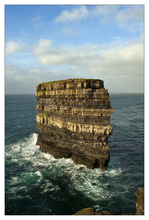 I am posting another picture of north Mayo. This one was taken a month ago at Dunbriste. While the sea is very calm, it was very windy on top of the cliff!