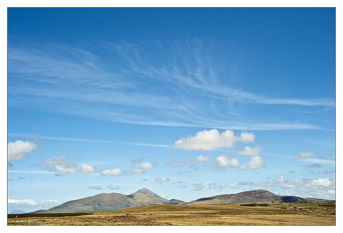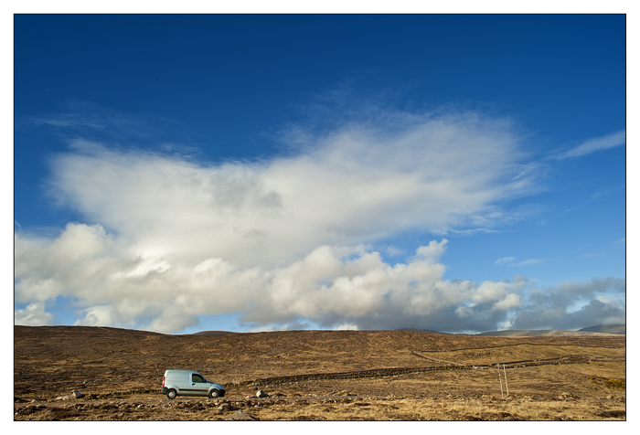 I took this picturein mulranny, I was actually photographing Clew bay and Croagh Patrick When I turned to go back to my car I saw this fantastic cloud, I photographed it without the car, but then decided to include my car because it gives the whole thing scale and also as a kind of tribute to the car!! As you can see this car brings me up and down all sorts of tracks and bog roads, I nearly got caught out on a bog road on the same day this picture was taken,. the ground was too soft all around me to turn and I had to reverse for about half a mile to find a place to turn. I got a puncture the same evening, but fortunatly the tyre stayed up until I got home and deflated during the night !!