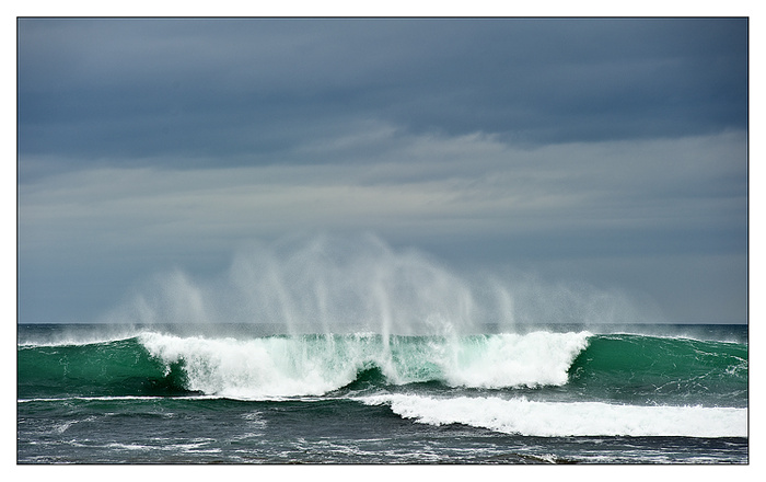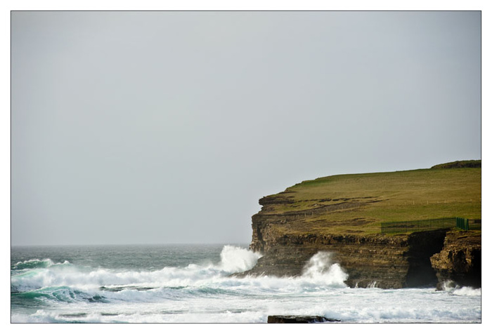 Todays picture was taken at the same time and location as yesterdays. Having photographed Dunbriste I wanted to go close on the waves, but that meant trekking out the coastline towards the edge of the bay. The waves looked great, and so I had to climb over rocks and traverse long flat rocks covered in seaweed to get to a good vantage point. Not knowing the area well I was very aware that the tide could cut me off and so I was nervous not to stay too long. This is as close as I could safely get to the waves and the picture is taken with a 200mm lens. I really could have watched them all day but as I say I was nervous of the tide and so dragged myself away after fifteen minutes or so.