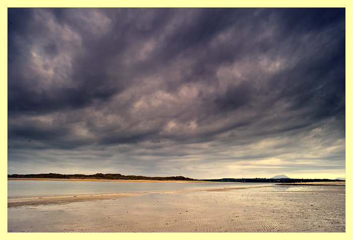 Patricia and I are in Kilalla for a couple of days, we are staying at the Kilalla Holiday cottages, http://www.killalabayholidays.com . it has been very cloudy and the sun did not break through as I hoped it might. We went for a walk along Ross Strand, I took this picture at about 8.50 twenty minutes or so after the sun had set, I thought the sky was almost surreal, and looked so heavy it might fall on us!!