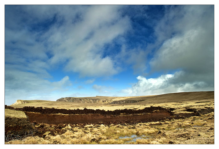 I am posting another picture from the top of Kilgaligan. It shows recently cut bog (Turf) on top of the cliffs.