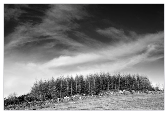The weather today was not great, I got out for a short while in the morning but it rained all the time I was out so I am posting a picture taken at the weekend. This small plantation of trees is near Blackloon near Kiltimagh, what attrected me was the sky which I knew would look good in Black and white.