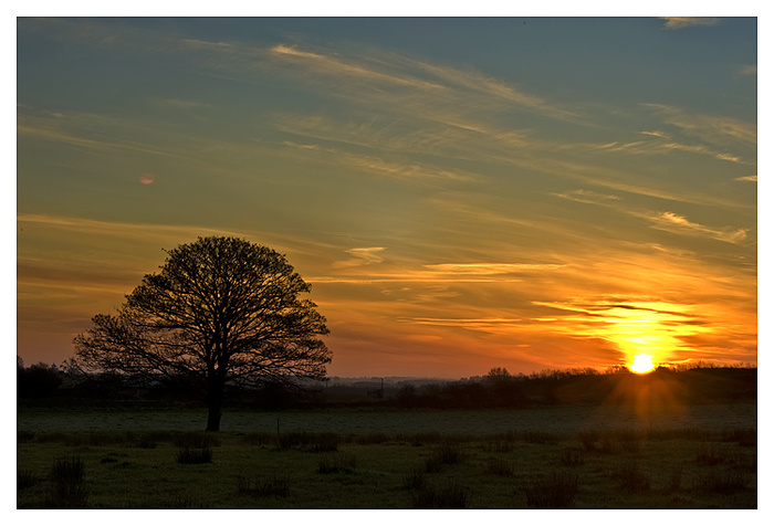 This morning I had intended to go to Achill for a Sunrise on Keem strand. The sun only rises over keem for a relatively short period during the year. However I awoke to icy roads, there was frost after a rain shower and the road was like a an ice rink. So instead I just went went down the road to a bog close to our house and photographed the sun rising behind a tree.