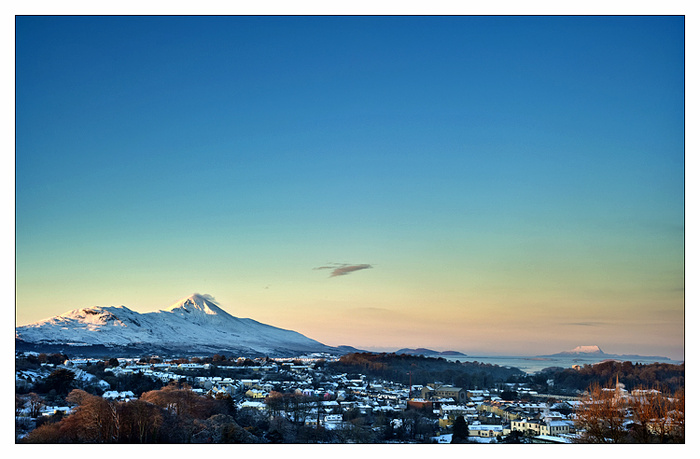 The day started very grey but cleared up nicely in the afternoon, I had hoped to get out in the afternoon for the sunset but got held up and did not manage to get out. This picture of Croagh Patrick was taken yesterday morning. The picture was taken for the sky really.