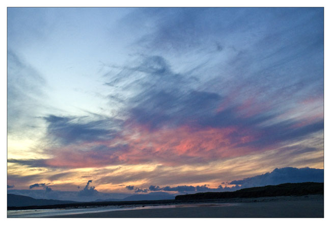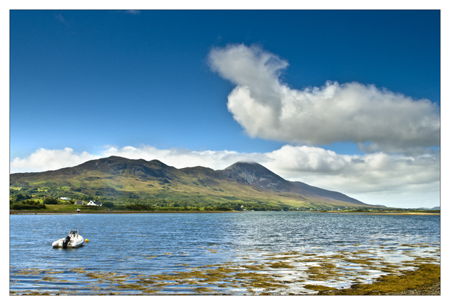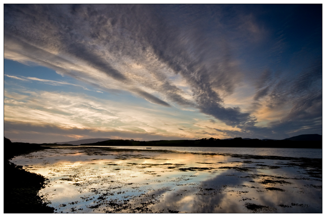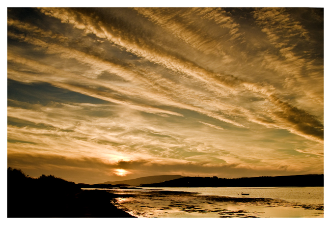 Today was a day were the weather and the sky was constantly changing. I went cycling again this morning but decided not to bring the camera because the skies were so dark and I was sure I was going to get a very heavy shower. I returned home 40 minutes later, not only had I not got wet but the skies were blue and the sun was shining! I had a chance to go out at 5.30 and the weather was still showery but with great skies and lovely sunshine, I decided not to go out as the sun would be that bit lower in an hour or so and things will be more interesting. One hour later the sun had disappeared behind heavy cloud that came in from the west and was not seen again for the rest of the evening.. So I got no picture today. I am surprised at myself because I should have learnt this lesson before,always take your chances, and even as I rode off on the bike I just knew I would regret not bringing the camera! So I am posting a picture taken a couple of weeks ago in similar weather conditions in Mulranny.