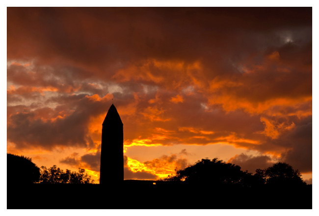 This photograph of the round tower at Turlough Co Mayo was made two nights ago. I was travelling towards Castlebar and was the passenger in the car. Patricia was driving , I often pass by the tower and had never seen it like this, the problem was how to position the tower between me and the sun. We took a detour off the road, and I then scampered up a nearby hill and was delighted with the position I was able to get to.