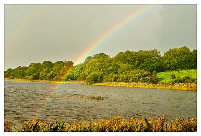 As I drove to Westport this morning , the showery weather produced a lovely rainbow just as I approached Castlebar, so instead of turning towards Westport I swung a left and went to Lough Lannagh, there was the rainbow right in front of me, and I had found the end of it ! Where was the pot of gold? Maybe it was on the lake bed? Anyway I only had time to fire off three exposures when the rainbow disappeared and the heavens opened.