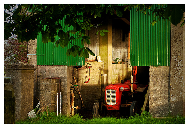 This old tractor is parked about a half a mile from my house in Kiltimagh. First thing in the morning the low light seems to pick out the interior of the barn and the tractor. I often admire it but this morning I stopped to photograph it. The light was not too strong because the sun was partly shaded behind clouds and a few minutes later was completely obstructed. The scene looks very different without some directional light. The rest of the day remained grey so I was glad I got this picture early.