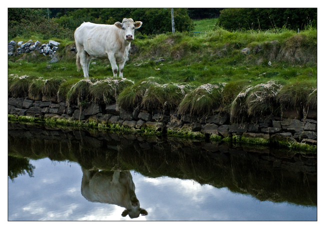 Well the move is nearly done, I did find time today to teach a one hour lesson to two visitors, Orlaigh and Pat were just great students, so enthusiastic, the hour felt like it was over in minutes! I did not get any pictures taken however, but I did meet this cow last night when out for a cycle I had stopped to photograph reflections in the water, it was about 15minutes after sunset and I had no tripod so I had to use the camera at a very high iso, but i was pleased with the result. I dont think this cow had seen a photographer before, at least not in shorts and high viz vest!!