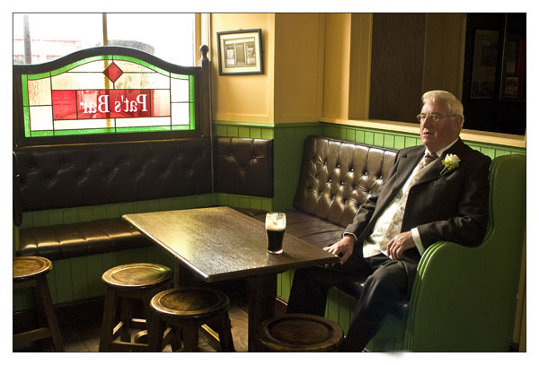 Anyway the rain stopped around 11.30 and I helped my friend Terry to photograph a wedding. here are two of the pictures I took. The first is of the grooms Dad having a quite pint before the off, and the second is of the happy couple after the wedding ceremony.