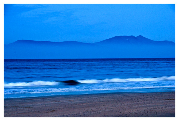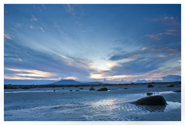 what a day I had today. Up at 2am drive to Dublin, fly to london spend the day on a photographic training seminar with Joe Mcnally . Joe is one of my phographic heroes. He works with national geographic and I have two of his books, "the hot shoe diaries" and "The moment it Clicks" The day was all about using flash for portraits. Joe is a very funny guy and a great presenter and of course is very very knowledgeable. any way it is now 1.50 am and I have just got back to mayo. so I am posting another picture from carronisky beach , this one was taken maybe twenty minutes after the sun went down.