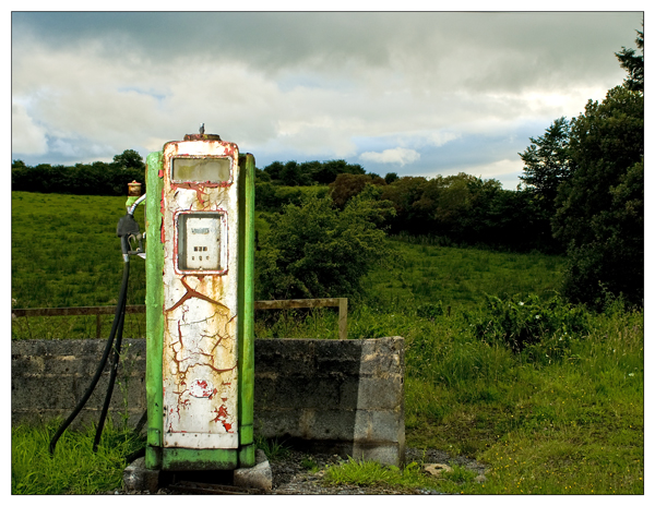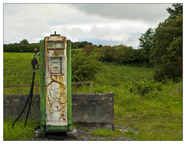 I photographed this old petrol pump in Manulla yesterday evening, but there was no sunlight so I decided I would try again this evening. Once again we had another very cloudy evening and so I brought my flashgun with me to create my own "sunlight". Modern flash is great and can be operated off camera wirelessly . In this case I used two flashguns, hand held about six feet to the left of the camera held above my head directing the light down onto the pump. The flash is ttl but the camera is in manual mode. I had no time to experiment but I am happy with the result I got, the two pictures are both " acceptable" but look very different.