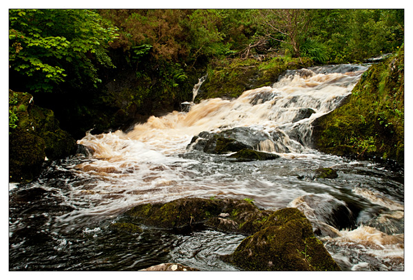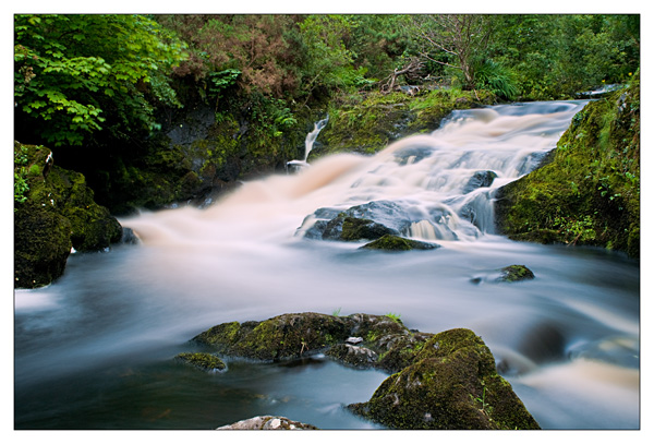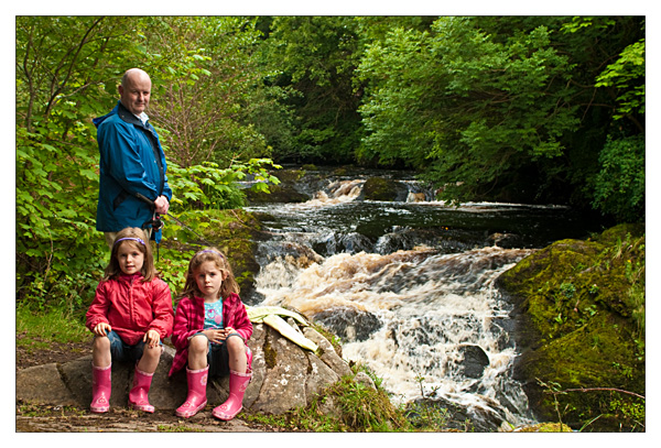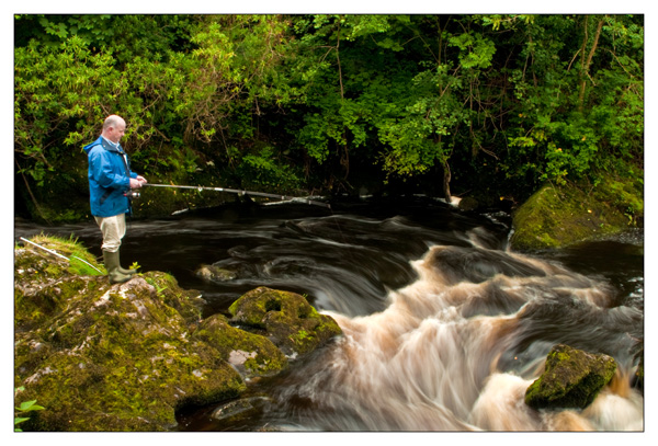 I decided to experiment some more with the "big stopper" ( a ten stop neutral Density Filter) so I went down to the banks of the Owenwee river just outside Westport. When I got to my favourite spot I found Aden Kelly and his two little girls fishing. While I was still setting up the camera Aiden hooked a Salmon and was clambering over the rocks playing the fish. The fish however managed to escape ! Aiden said he didnot mind as it was only a small one. Now this surprised me a little because I thought it was only the REALLY BIG ONES that got away! Aiden explained to me afterwards that there is a catch and return policy on that stretch of river anyway.