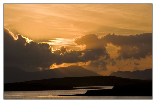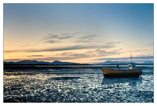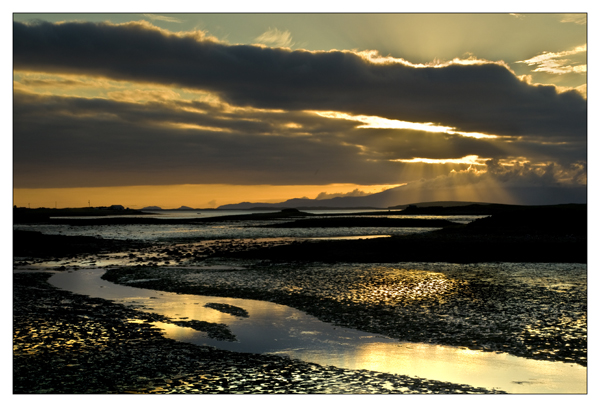 The sun set behind cloud certainly, but it still made for some very dramatic light over the mud flats in clew bay.