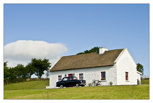 Directly across the road from where I photographed the foal I photographed this thatched cottage with the old bike and old car in front of it. The house looks like something from the 50s or maybe the sixties.