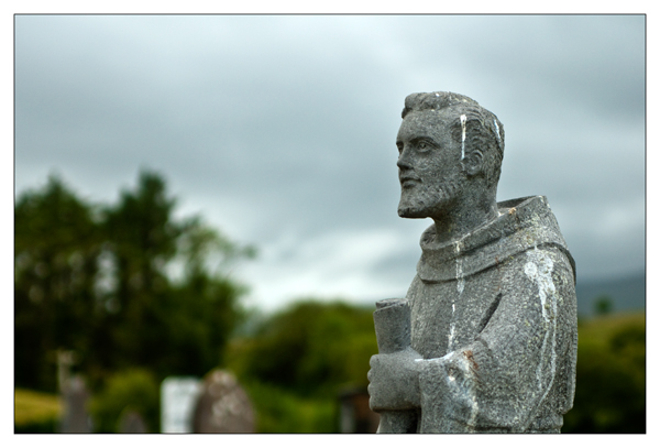Today was one of those days when things just kept going wrong! I intended to go to Galway early to set my nephew John on the bus to Cork and to do a few things in town. John had helped me with some photoshop during the week and was up very late lastnight printing.( I cant say how late because his Mum might read this!!) We said we would be in Galway by 10am. Galway is a little more then an hours drive from Westport. Anyway we finally left westport at about 12noon!. we had some jobs to do on the way and poor John kept missing each bus he planned to catch. By 1.30 we were approaching Tuam and confident of reaching Galway on time for the 2.05 bus when the car broke down! So another hour was lost waiting for the breakdown truck!! We eventually got John on the 5.05 bus and we made it back to Westport for about 8.30pm. I had no pictures for the blog and so headed out to Berta to get the sunset. there wasn't one! But it was great to be out in the brisk Atlantic breeze. I photographed clare island and loved the tiny hint of colour in an otherwise grey scene. on my way back through Murrisk I stopped and photographed the famine memorial, now those people really new what a bad day was like.!