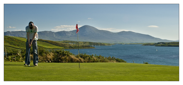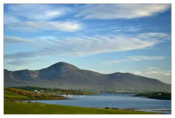 I was in the gallery all day today. this evening the weather was very dark and it looked unlikely that I would get any picture. My nephew John is staying with me at the moment, he helped me to do some stock taking in the Gallery and so I took him playing Golf this evening. I decided it was not worth bringing the canmera. Clew Bay Golf Club is a small nine hole course with amazing views over Clew bay and Croagh patrick. Well despite the dark clouds the sun broke through briefly as we reached the second tee and the islands were lit in the most glorious light, I had no camera and had to store the image in my own memory bank. Unfortunatly I cant post it on the site! so my learning is to always take the camera!