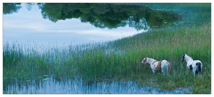 This evening I was teaching a night class in Ballyhaunis on the way home I spotted these two horses they seemed to be eating the reeds in the water.