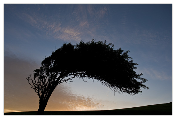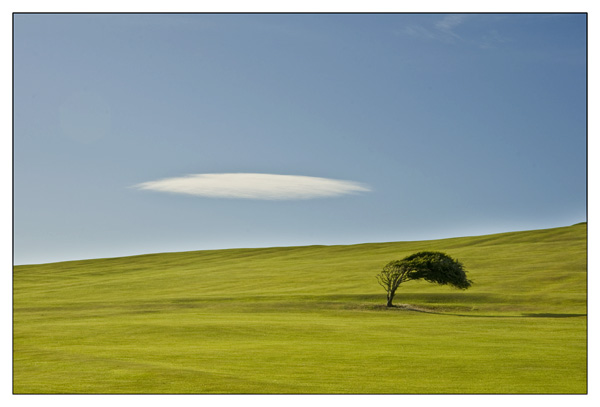 The first is of a tree which has been shaped by the atlantic winds, just as we approached the first tee I noticed the small cloud in the sky above .