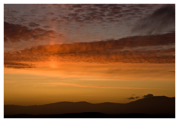 All evening I watched to see the sunset develop. Around 6pm Ihad not taken any pictures, it really felt that we would get a good sunset. At 9.45 things looked very promising, I went up slaugher hill and waited . but the sun dropped behind some clouds and so I waited some more. Usually the best time to photograph sunsets is for up to one and a half hours after the sun actually sets. There were some pastel colours in the sky but they faded fast and disappointed I headed home.
