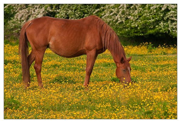 This morning I was driving from Claremorris when I spotted this horse in a field of buttercups.