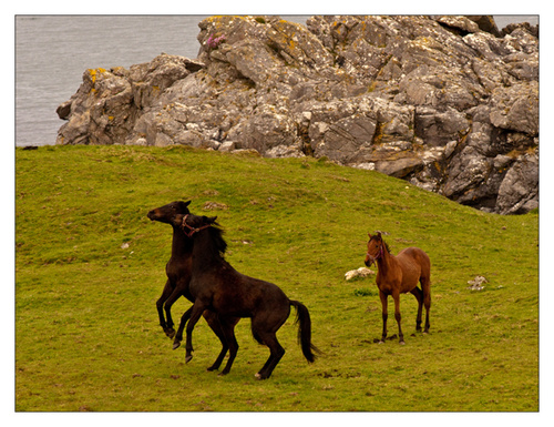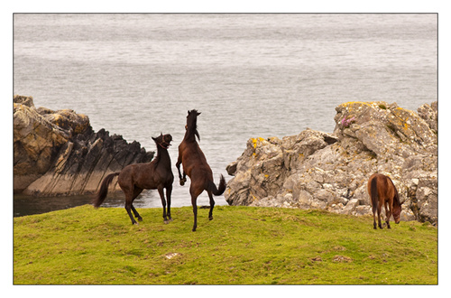 The day started very grey this morning, so with a lack of light I decided I would photograph at Carramore Beach and concentrate on moving water. On my way there I spotted these horses sparring with each other and so stopped and took a number of pictures.