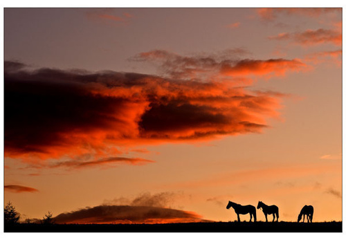 By the time we left the sun was setting and we came upon these three horses on the top of the hill.