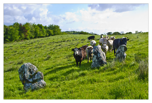 Just a word of caution to all landscape photographers. We often have to walk long distances to get to the best locations. This often means crossing fields. On this occasion I was just setting up the camera to photograph some standing stones at Turlough , Castlebar when I was approached at speed by some cows.