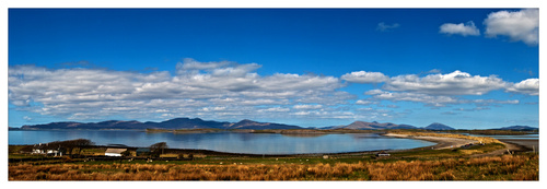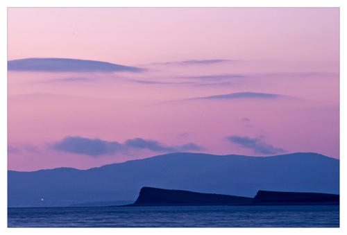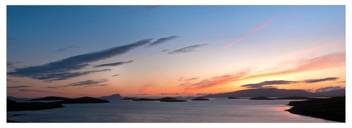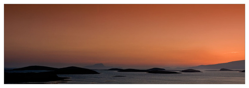 Another lovely day in Mayo and for a second day I was unable to get out with the camera. Its terrible when life gets in the way of Photography! I was driving away from a developing sunset this evening all the time wishing I could turn the car around but I just had no time to stop. I always feel in these situations that I might be missing the big one! Anyway the sunset did not develop and it actually got dark quickly, so I felt almost relieved!! Very sad I know! Anyway I am posting a picture taken just after sunset on Sunday night over clew bay. What you can’t see in the picture is the wind, which was coming straight off the sea and was really cold. This panoramic view consists of six individual photographs “stitched together on the computer”