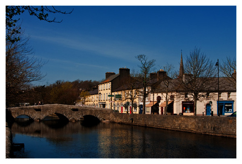 The weather in Mayo was fantastic today, bright sun and blue skies. Not a great day for photography due to very high contrast levels and a haze that reduced visibility considerably. As it happened I was in the Gallery today and also busy in the evening. When I realized I was not going to get out in the evening I decided to get a picture in the town, so I took a few minutes to cross the river and take this picture of the Mall in Westport, you can see my gallery “Images of Mayo” in the bottom right hand corner of the picture with its blue shop front.
