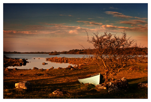 Today I was travelling back from Cork, it was a beautiful day and I wondered where I might get a picture this evening, I knew that if I drove straight home I would reach Westport just before sunset. As I drove through Headford in Galway I pressed the favourites button on the Sat Nav. Up came the nearest four favourite sites. One of them was an entrance “lake like burren” I had made that entry two years ealier when I had discovered this spot on one of my backroad explorations. I did not realize at the time that the lake was Lough Carra and my entry was simply a description to jog my memory.
