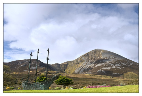 I went out to Murrisk early this morning to photograph the famine Memorial. The light was just right and being early on a Sunday morning there was very little traffic. I did have a frustrating few minutes when a couple of people stood " in my shot" taking their own pictures, the sun kept going in and out behind clouds and I was afraid it would not return, but it did.