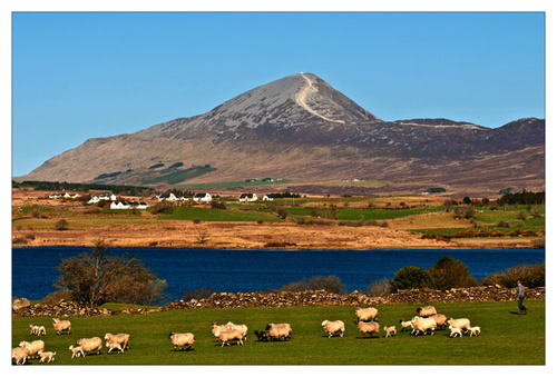 The first of Croagh Patrick was taken from the side of the Leenane Road, I was parked in an awkward spot and went to grab my picture. As I composed I removed most of the field in the foreground as it had nothing in it, but just as I turned away the farmer herded his sheep and lambs across the field.