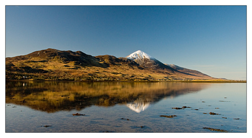 Today was a good day photographically speaking. The morning was lovely and I found it impossible to pass Croagh Patrick, the morning was so clear, the tide was going out as I began and the reek looked lovely snow peaked