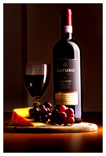 This evening I led a night class, we did some still life photography, it was a great evening, I divided the class into two groups, each group then had identical “ingredients “ and lights and had to create still life photographs. There was a lot of head scratching and the occasional curse as people had to do alot of problem solving. Monica, one of the participants kindly allowed me to include her picture here. If there are mistakes in tonights blog it may be because I have just finished the bottle of Chianti !