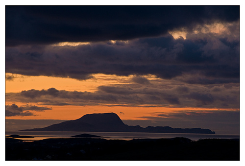 Yesterday I had a very successful day photographically speaking and I was able to post a number of pictures. Today was the complete opposite. I spent the day in the studio photographing working clothes for a catalogue, the work was very slow and it seemed that every garment was determined not to be photographed! Creases appeared all over the place, garments were re ironed, re shaped had pockets stuffed, unstuffed and just everything that could go wrong did.! When I finished this evening there was no light as it was very cloudy and I did not get a picture, so I am posting a picture of Clare Island photographed two days ago , you may remember I was chasing a sunset!