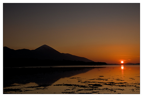 This morning I was up before the sun and went to Kinlooey Lough to try and capture the sunrise. It is about two months since I was there for a sunrise and I had not allowed for the fact that the sunrise would now appear at a different point, this meant a dash back to the car to drive around the lough for a better vantage point. I just about made the sunrise, and was sorry I had not arrived ten minutes earlier.