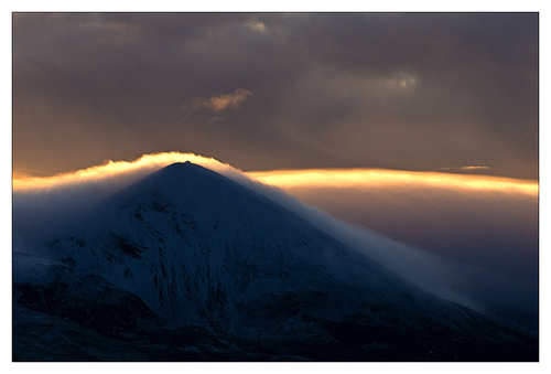 I finished in the Studio at 5.30 but it was raining and there was no interesting light,and I had a night class at 6.30pm Tonight I was showing the participents how to work with raw files.So with no time to photograph anything new I will have to post a picture from a few weeks ago. It was taken in January and shows a very different sunset over Croagh Patrick. On the day it was taken that little glimpse of sunlight was the only sighting of the sun all day. I love the way the church is highlighted.