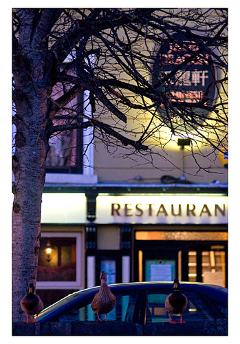 On returning to Westport Patricia ,my long suffering wife, pointed out these ducks who were sat on a wall outside the Chinese restaurant!