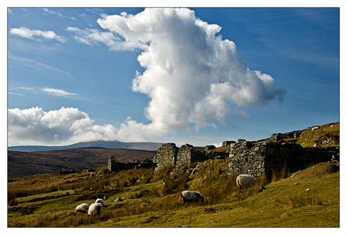 I am posting a couple of pictures taken yesterday on Achill. The first is of the deserted village, I liked the cloud formation