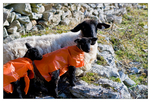 I was on the road most of the day today and once again was not able to get out with the camera. I took this picture a few days ago near Ballinrobe, truth is I nearly crashed the car when I saw the lambs in the field with coats on ! All the lambs in the field were wearing these little orange jackets.