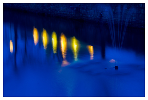 The close up picture of the fountain and lights is done with the camera white balance set to tungsten this causes the blue colour which I like.