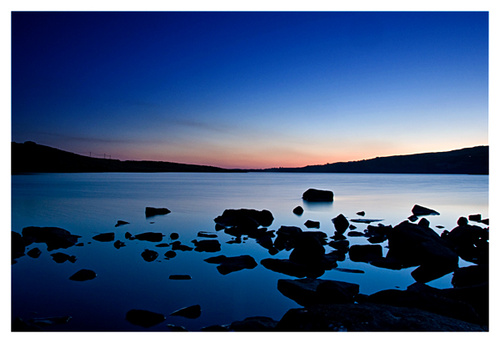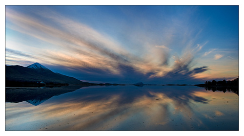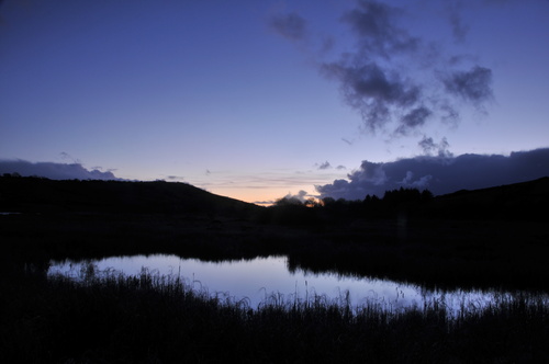 I travelled back from Cork today and met with one of my nightclass groups for an afternoon outing. The group took some panorama pictures of Lough Fiach which we will stitch together at the class on Wednesday. We then went to Letterkeane woods were people experimented with slow shutter speeds on some small waterfalls. On the way back from Letterkeane some of us stopped again at Lough Fiach and caught the last of the twilight of on the Lough. This picture was taken approx 50 minutes after the sun had gone down.